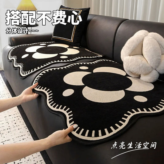 2025新款波浪兔毛绒沙发垫冬季防滑沙发套罩秋冬坐垫子扶手盖布巾