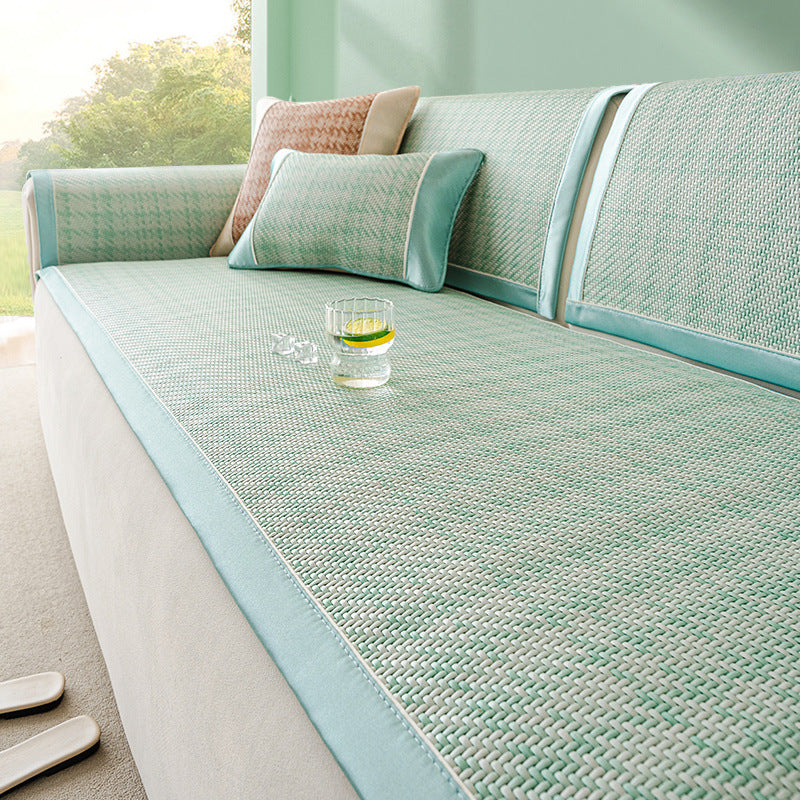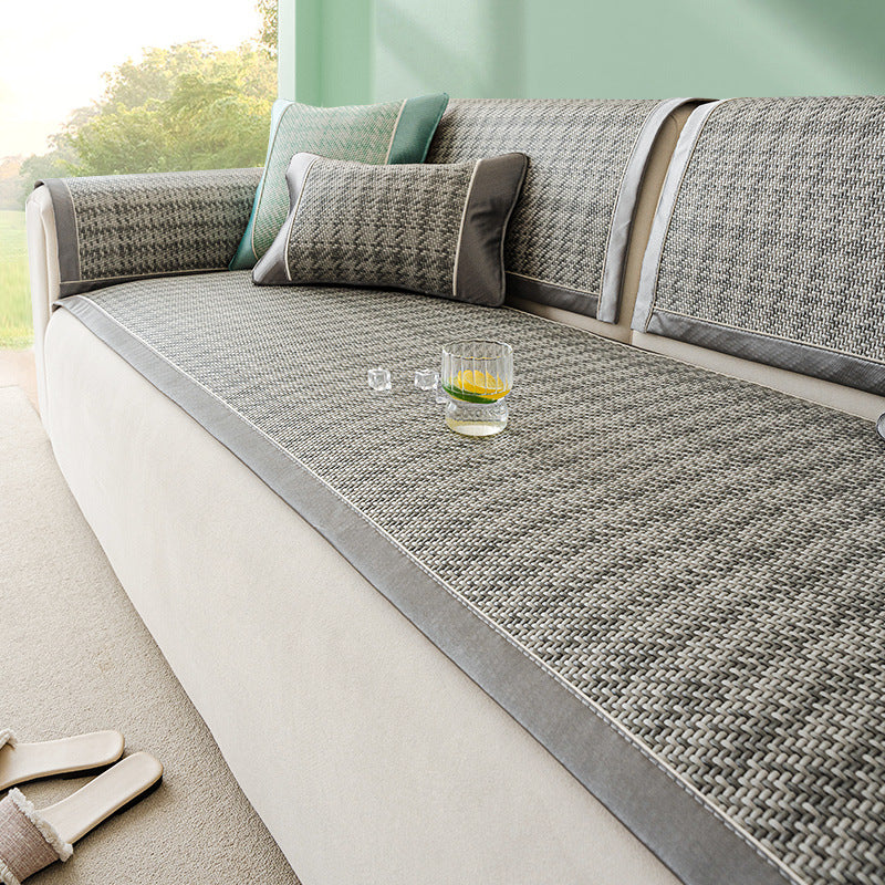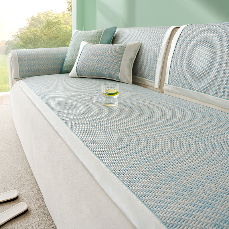 严选冰藤席沙发垫夏季新款冰丝凉席坐垫子固定防滑夏天款座垫盖布