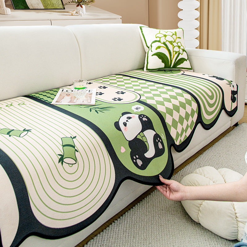 严选卡通熊猫冰丝沙发垫夏季2025新款异形沙发凉席垫防滑夏天坐垫
