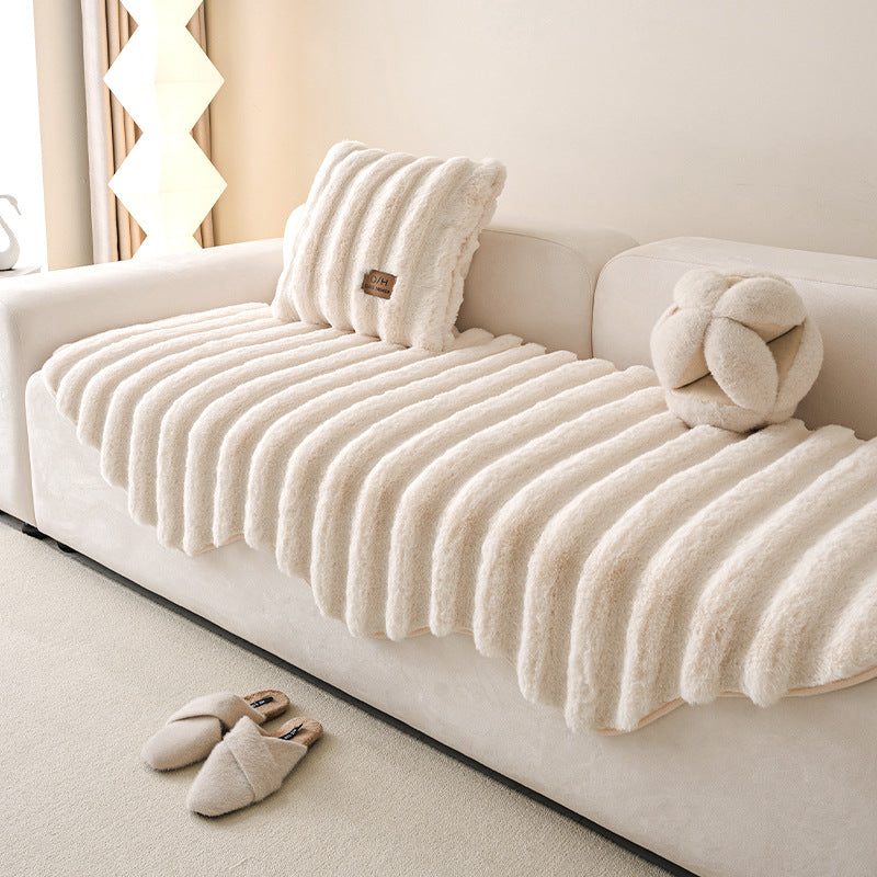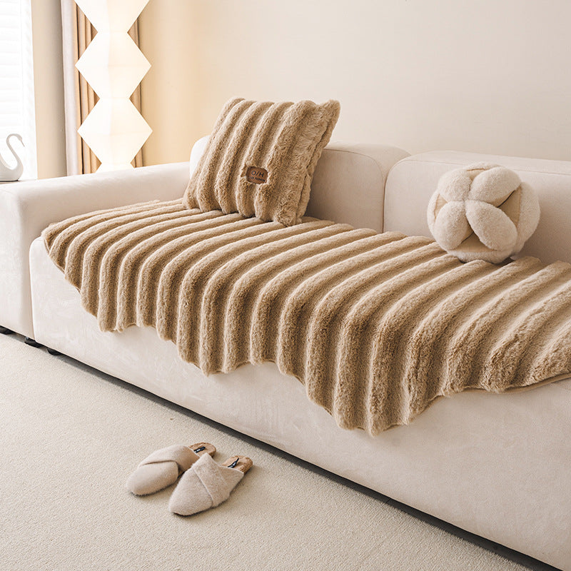 严选异形不规则沙发垫秋冬加厚毛绒高级坐垫防滑直排沙发套罩盖布