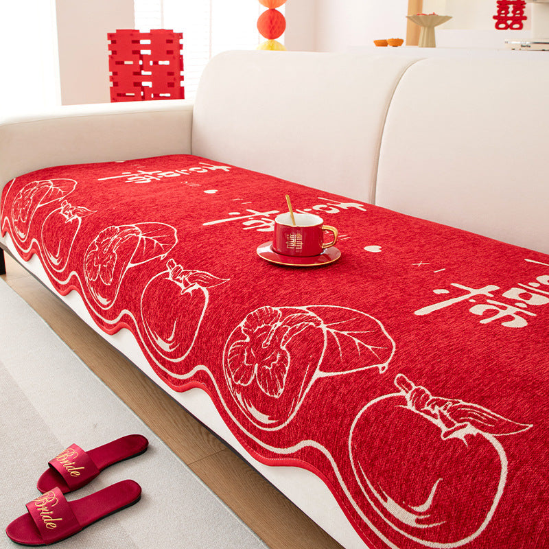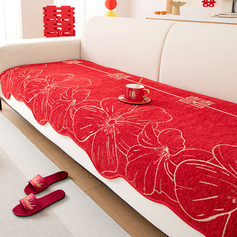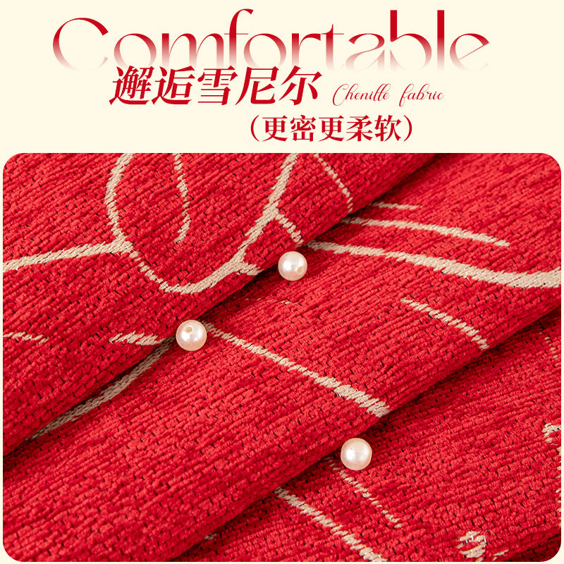 严选新年喜庆沙发垫子新款四季通用直排异形沙发坐垫红色结婚盖布