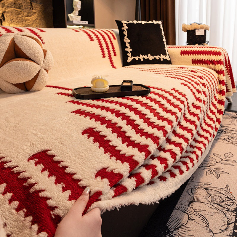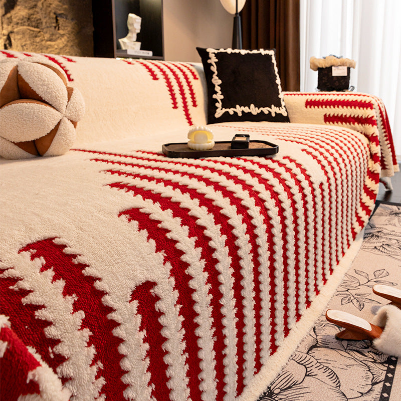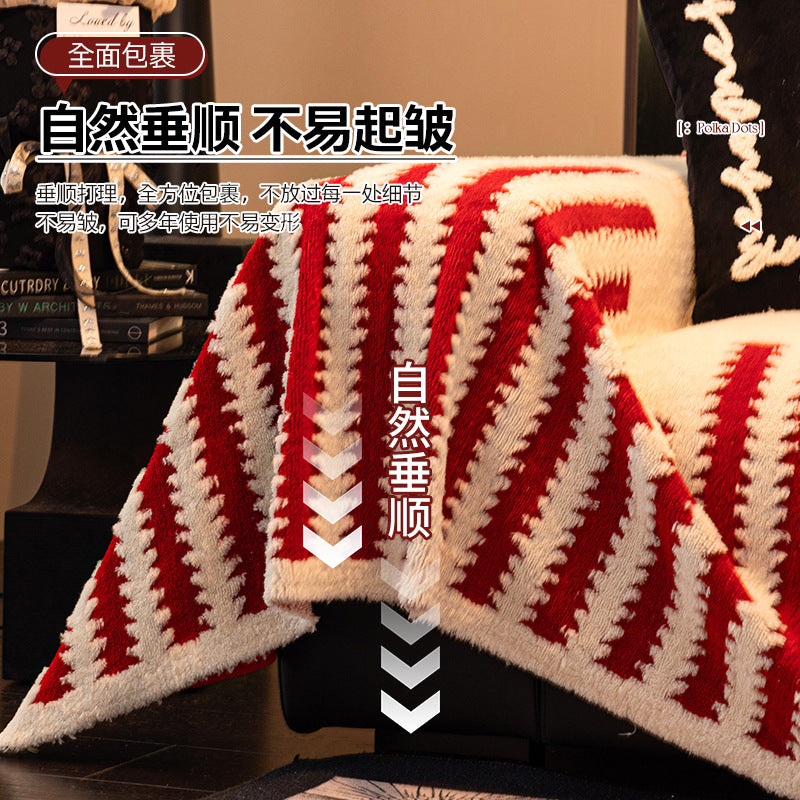 严选新年喜庆红色沙发巾一整张全盖套罩新款毛绒沙发垫秋冬季盖布