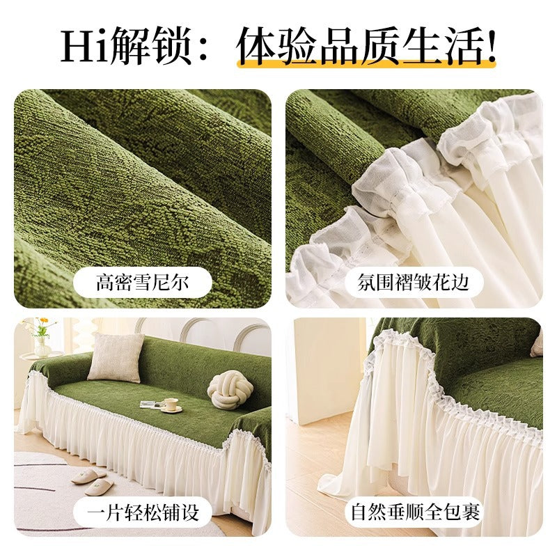 严选法式高级感裙边沙发盖布四季通用2025年新款沙发巾全盖防滑垫