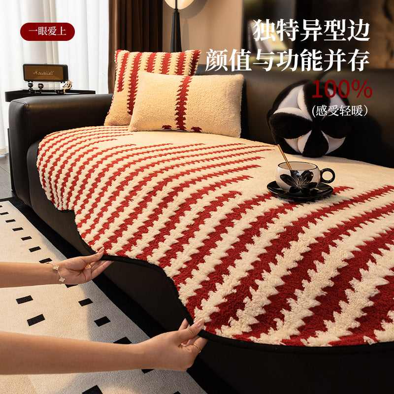 严选舒棉绒异形沙发垫秋冬款毛绒不规则直排坐垫高级感防滑皮沙发