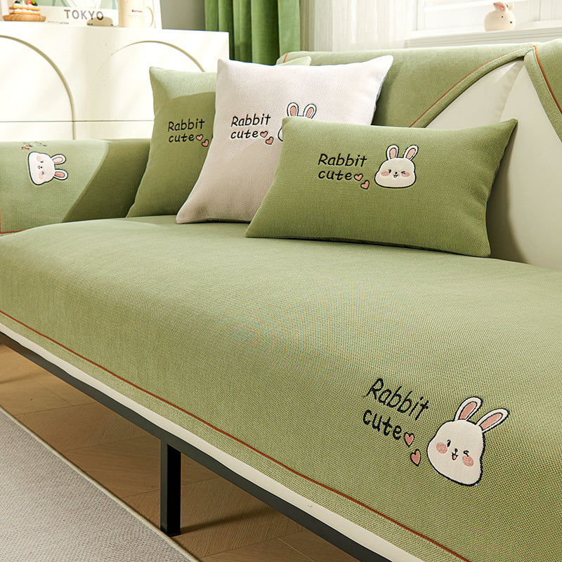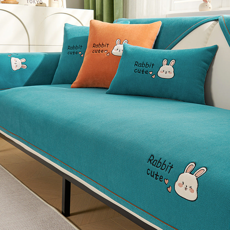 严选雪尼尔卡通沙发垫四季通用防滑沙发盖布套罩新款坐垫靠背盖巾