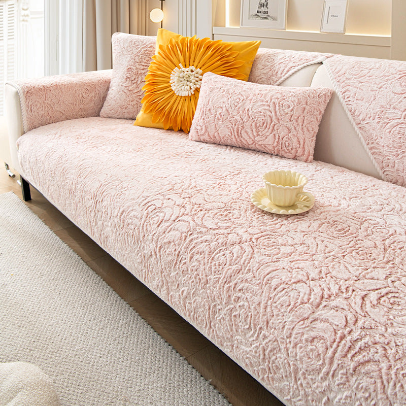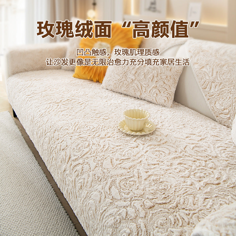 冬季玫瑰绒沙发垫加厚保暖毛绒坐垫2025新款固定防滑沙发套罩盖布