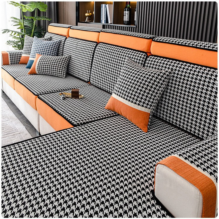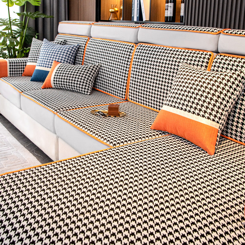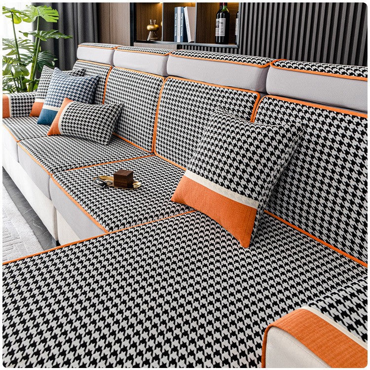 千鸟格雪尼尔沙发笠防滑全包万能套四季通用沙发套罩新款2025盖巾