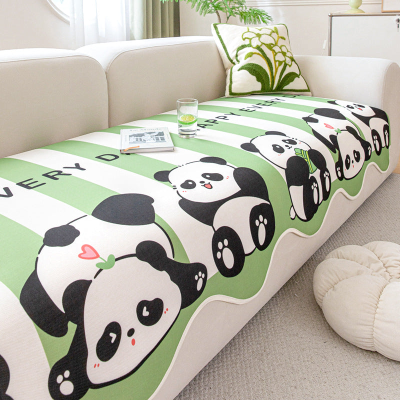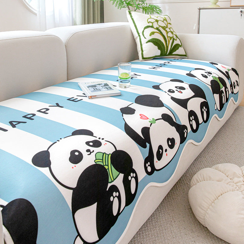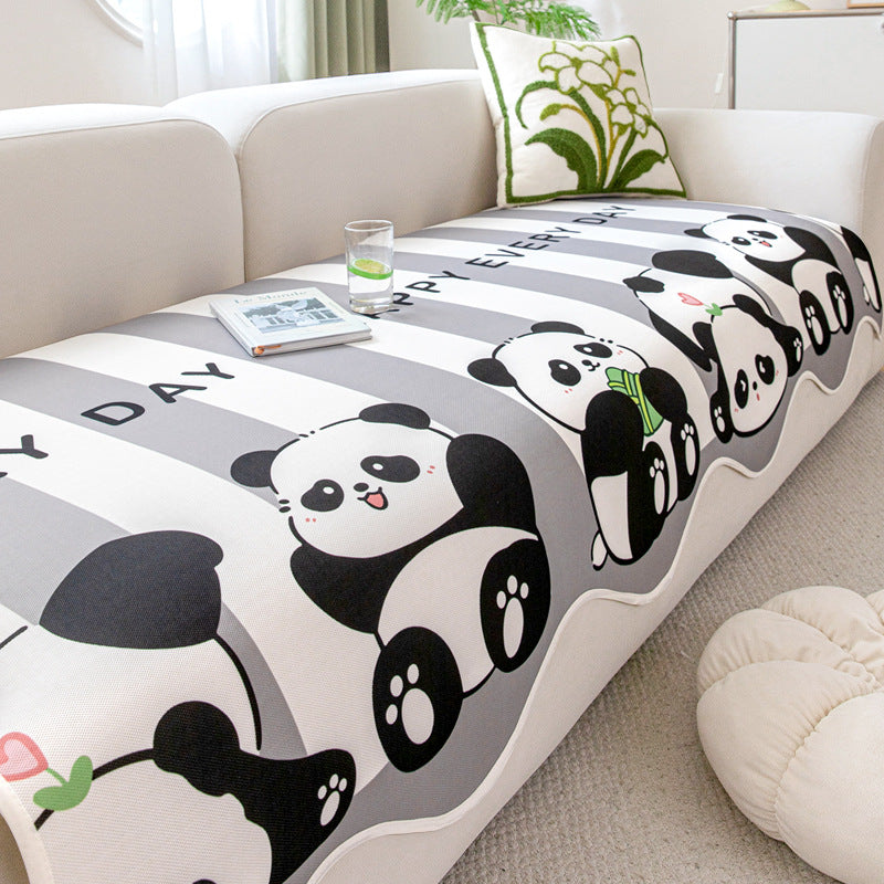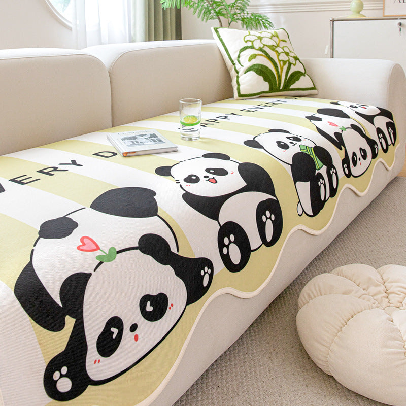 卡通熊猫冰丝沙发垫夏用固定防滑直排坐垫夏季2025新款沙发凉席垫