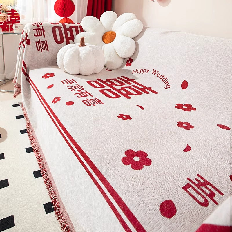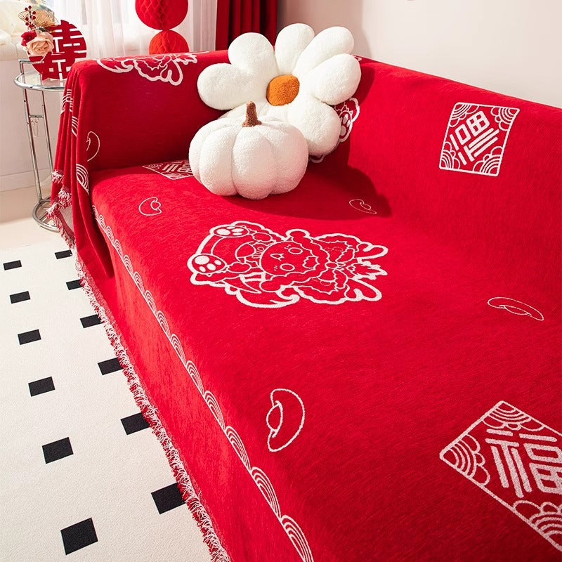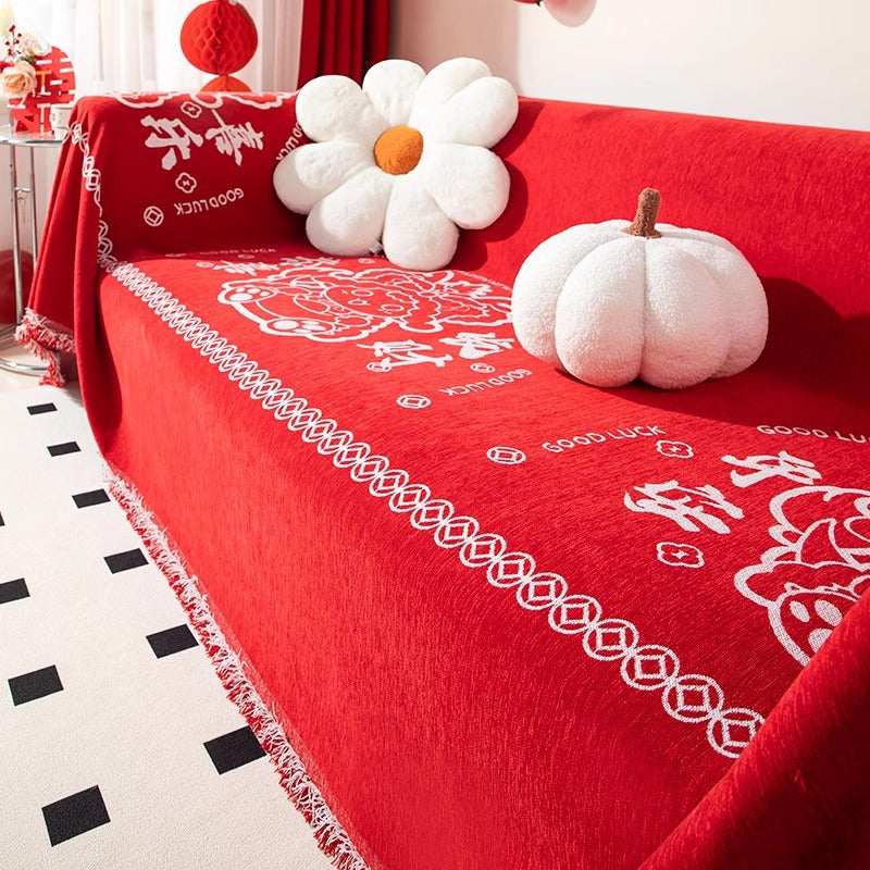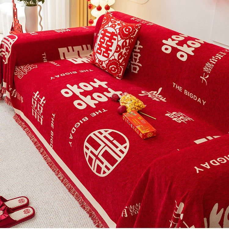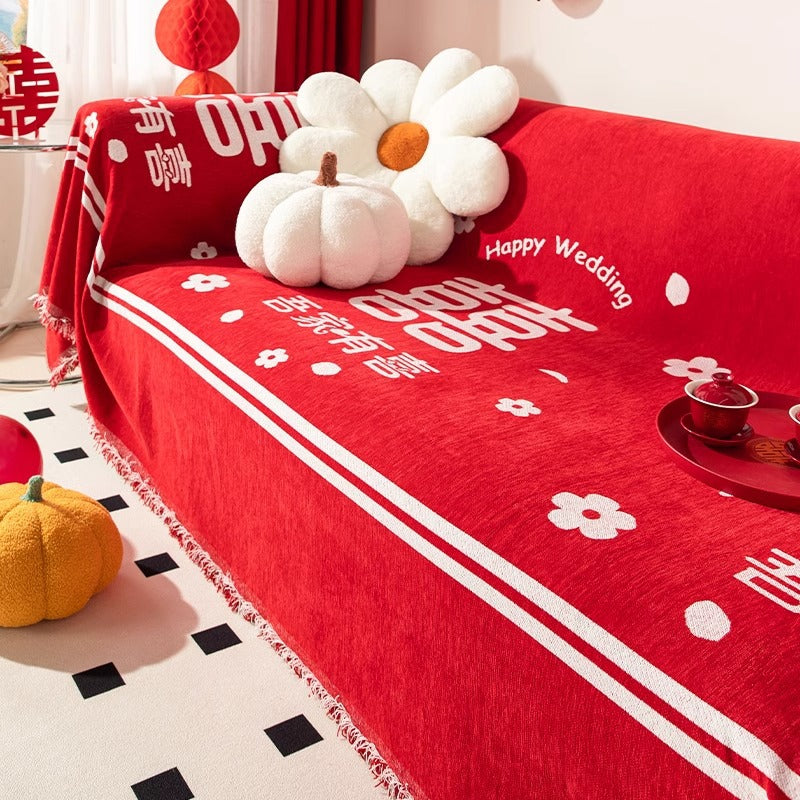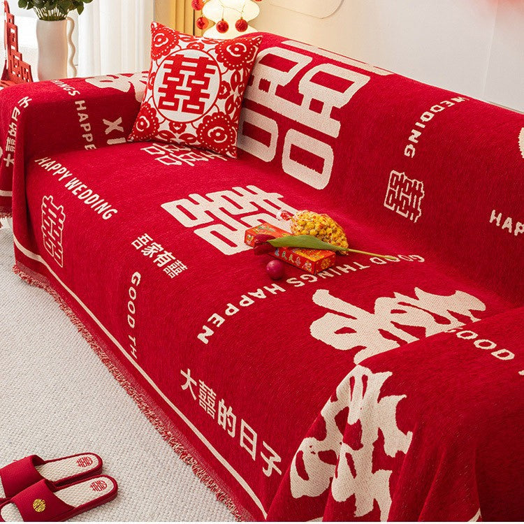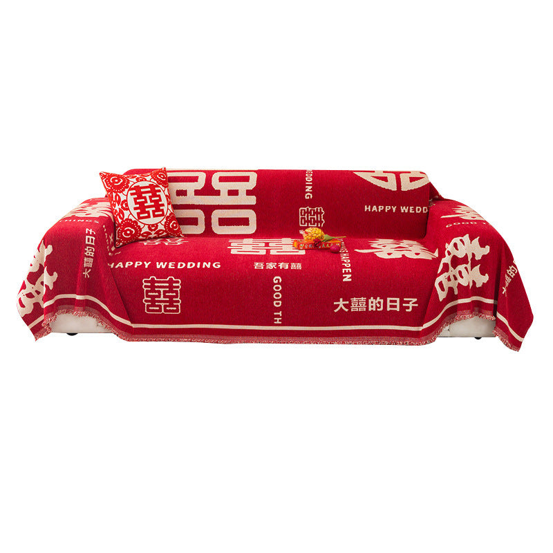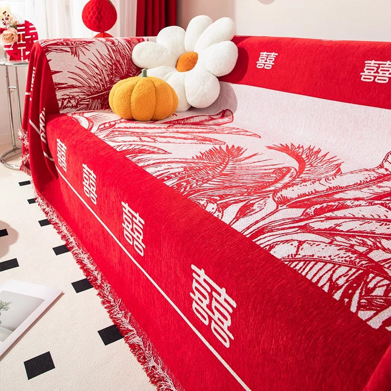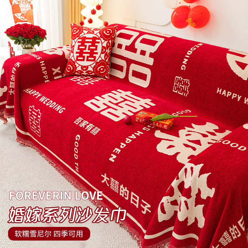 喜庆沙发盖布巾四季通用防猫抓大红色沙发垫结婚婚房布置防滑套罩