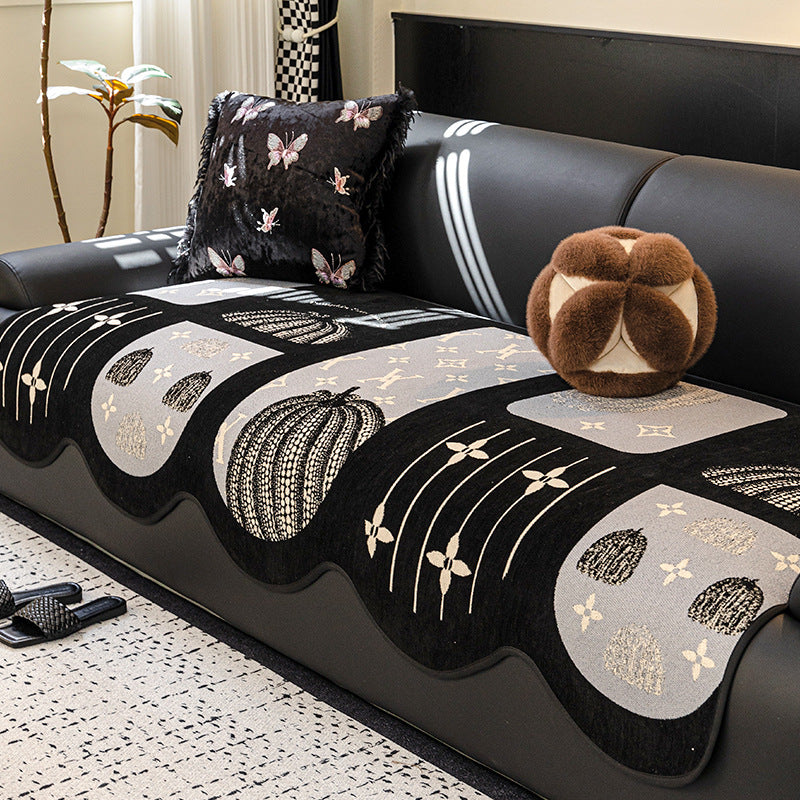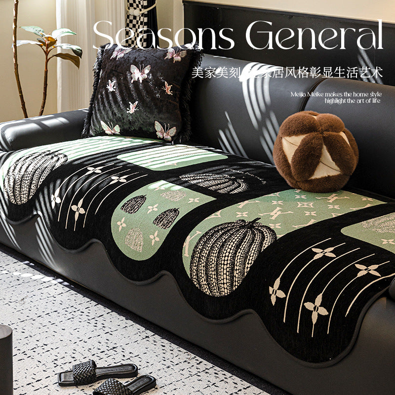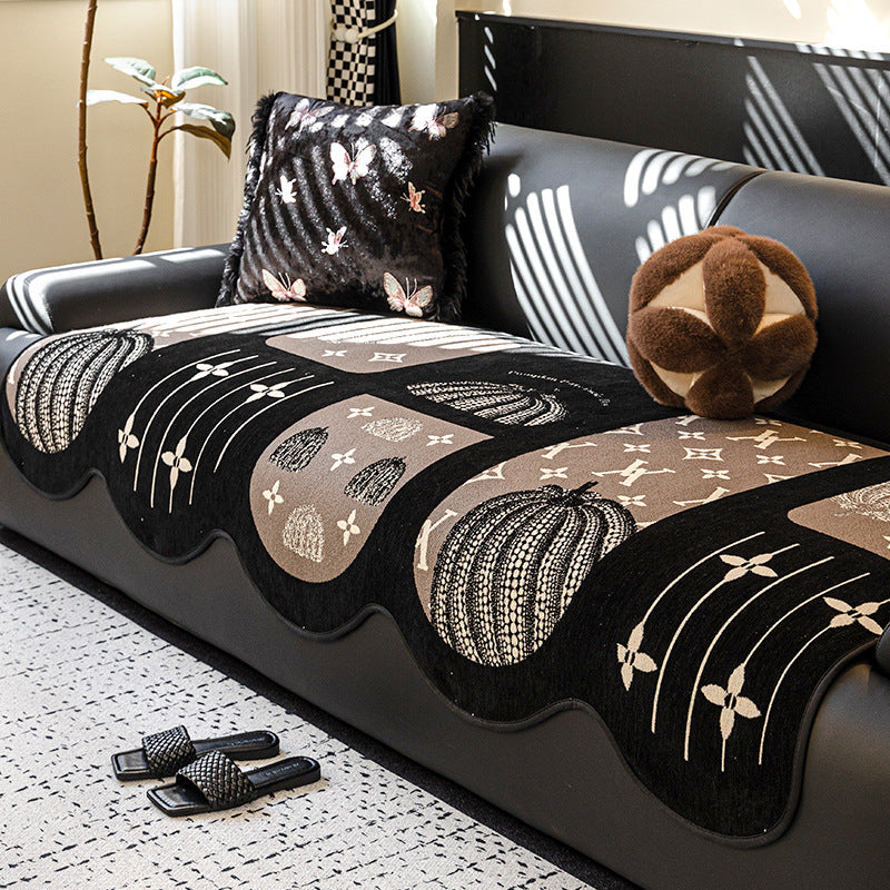 复古雪尼尔异形皮沙发垫2025新款四季通用高级感一片式直排坐垫巾