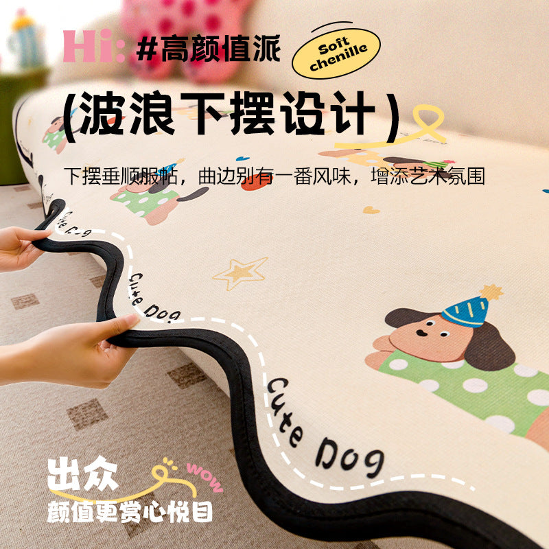 多巴胺异形沙发盖布高级感四季通用2025新款卡通沙发坐垫防滑盖布