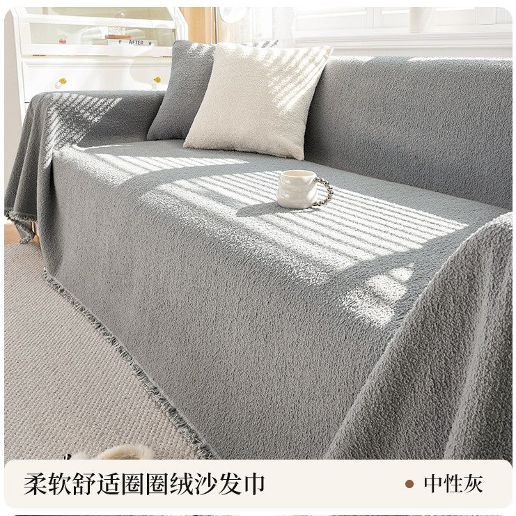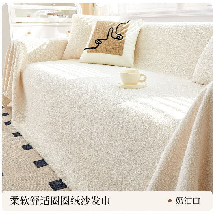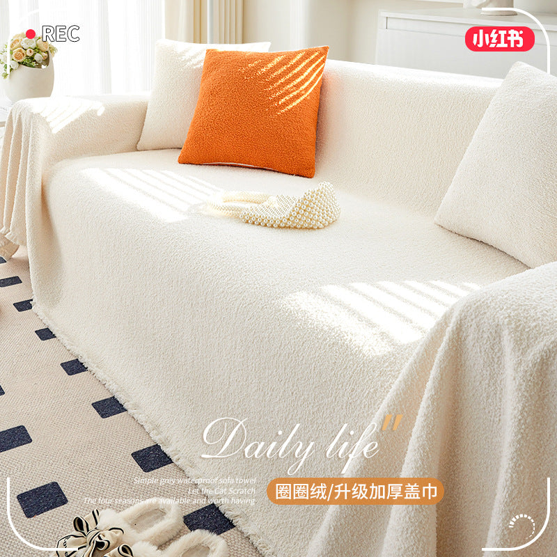 奶油风沙发盖布巾秋冬加厚一整张全盖巾防猫抓沙发套罩全包沙发毯