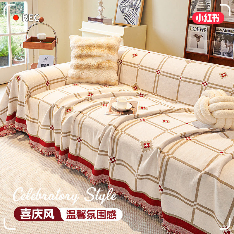 新年喜庆高级感沙发盖布巾雪尼尔四季通用全包万能套罩新款全铺盖