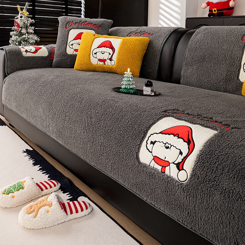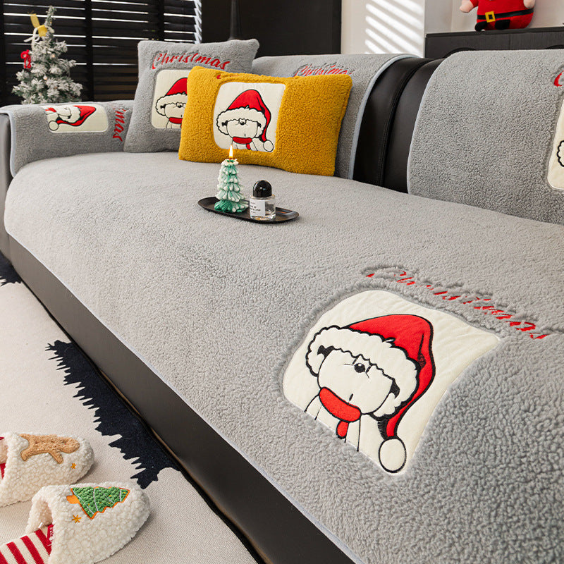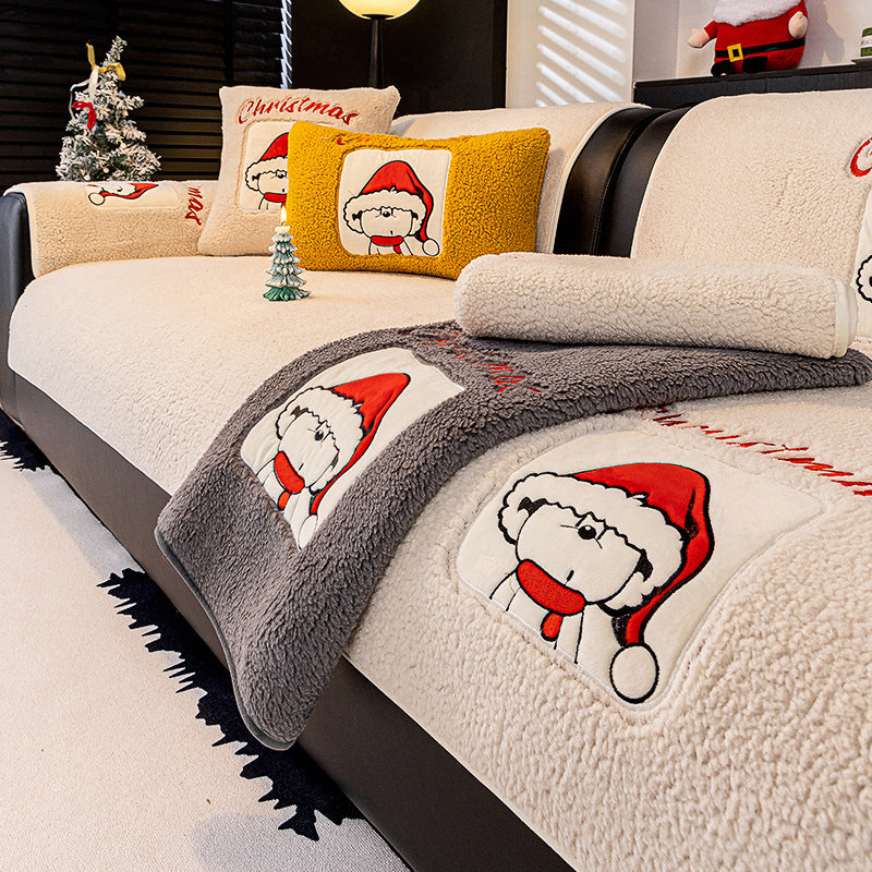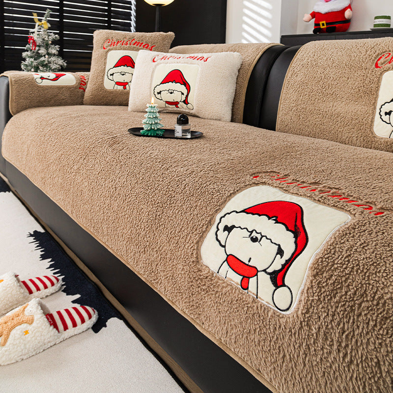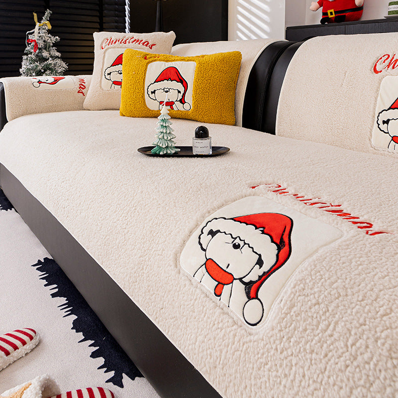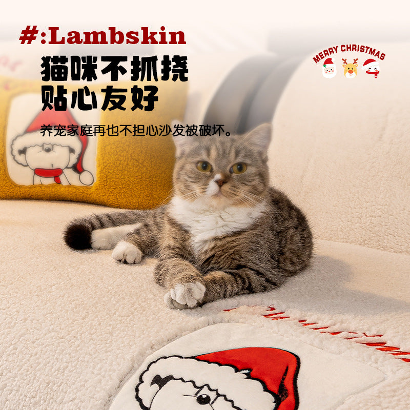 新年氛围感沙发垫冬季毛绒固定防滑坐垫秋冬卡通套罩2025新款盖布
