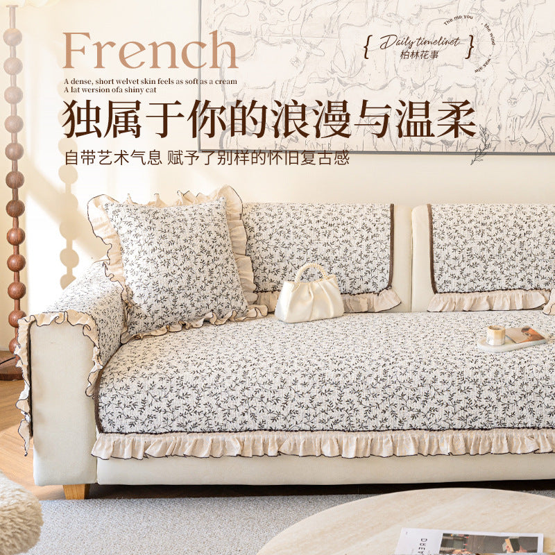 法式田园风沙发垫2025新款四季通用高级感裙摆坐垫固定防滑盖布巾