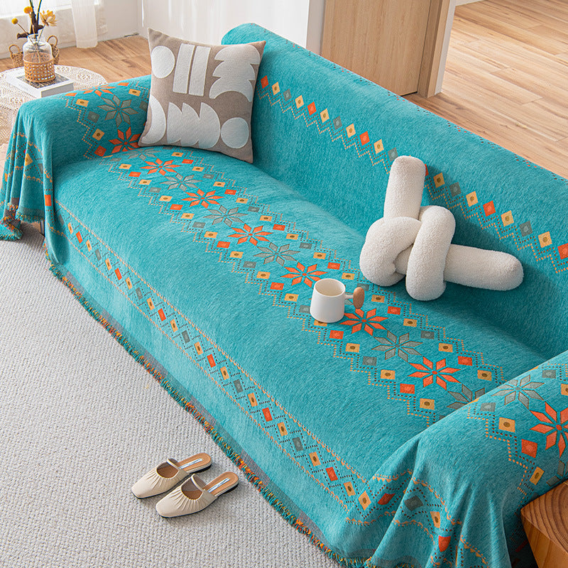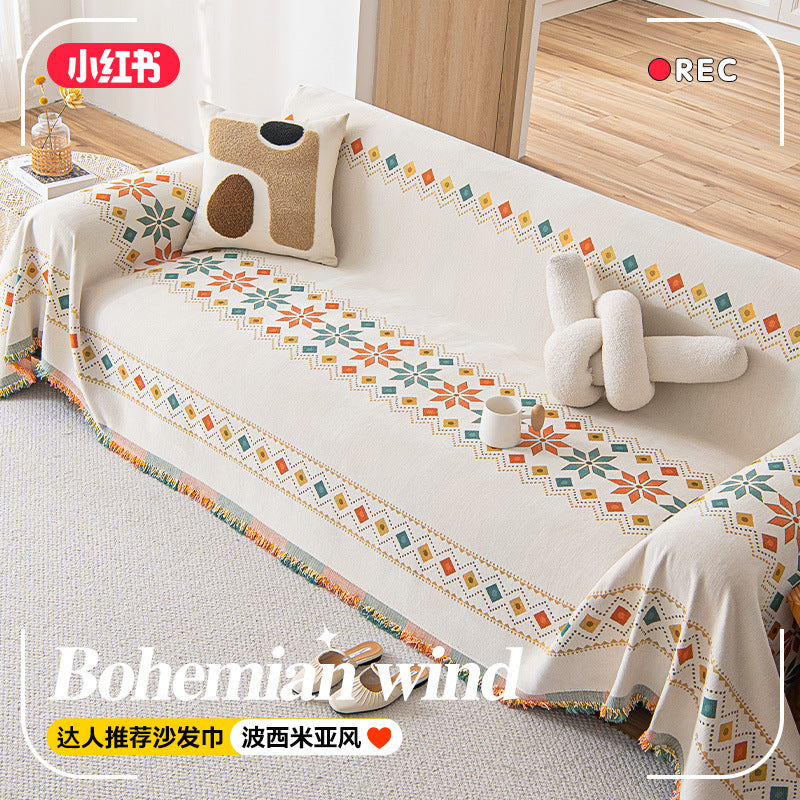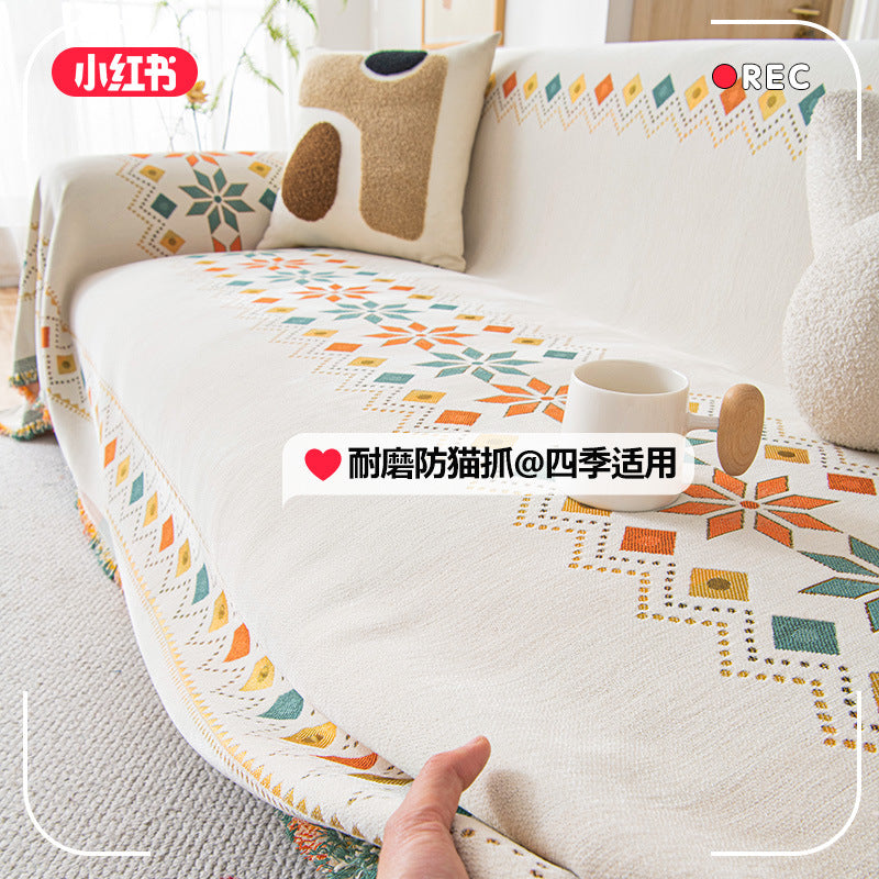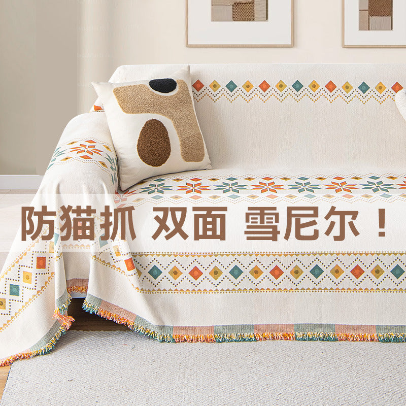 波西米亚风雪尼尔沙发盖布巾四季通用防滑皮沙发套罩防猫抓沙发垫