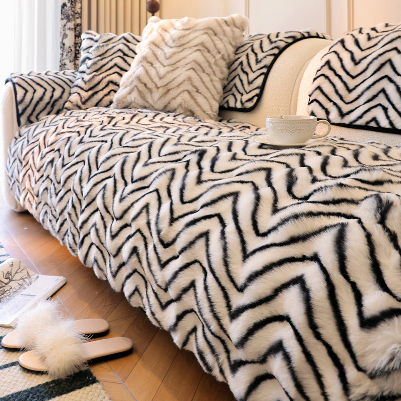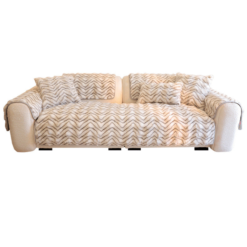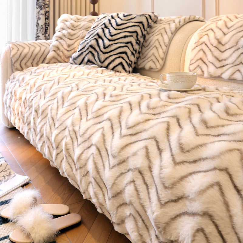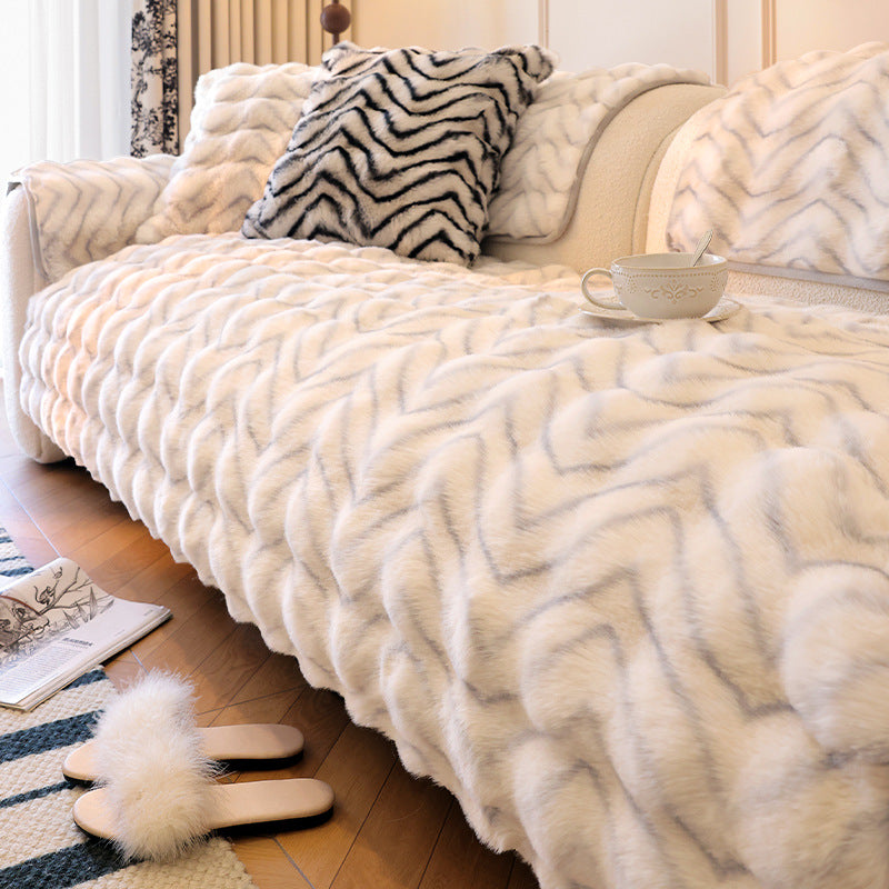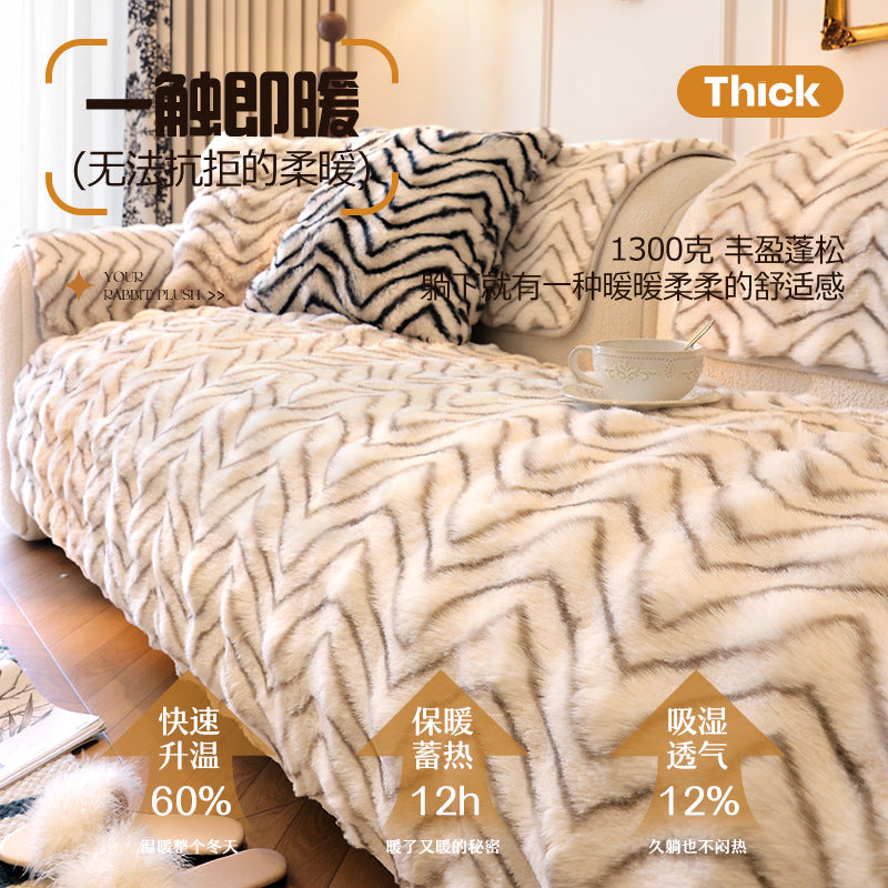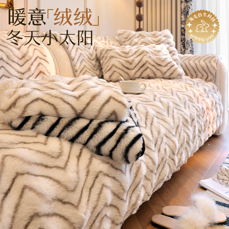 2025新款波浪兔毛绒沙发垫冬季防滑沙发套罩秋冬坐垫子扶手盖布巾